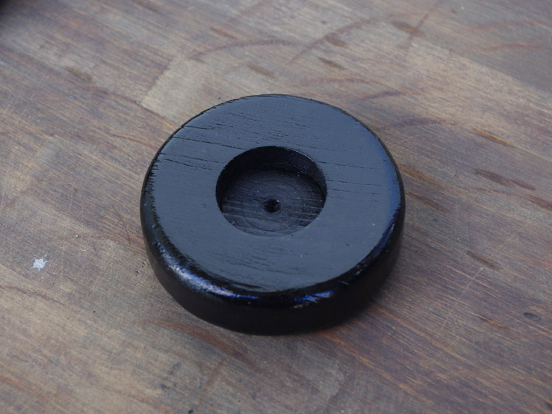 耐久性テストについては、当店で数か月かけ実際に家庭用足踏みミシンに敷いて割れが出ないか確認をしました。スギ・ヒノキの特性上、重さでへこむことはありましたが、今のところぱっかり割れてしまう現象は確認していません。数年経ったときの変化は未確認ですので(製作が半年前なのです!)、スペアとして1個をお付けすることにしました(カリン以外)。また今回の品物は職業用・工業用ミシン脚のフラットな面には向きません。車輪のあるところに限られます。