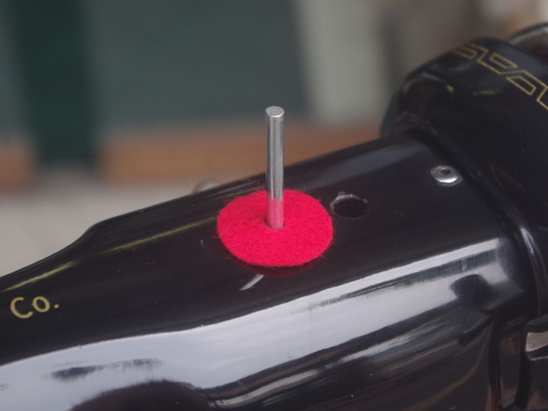 機械内部は汚れておりましたので分解してクリーニングしております。同時に細かな傷を見つけて整備し、消耗品は交換、組み立てて縫えるように調整をしております。こちらには返し縫い機能があります。また送り歯の上下機能もありますので、別途刺繍枠やダーニング押えを入手すればフリーキルトや刺繍も可能です。