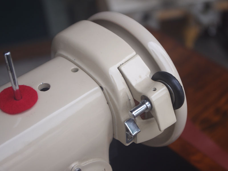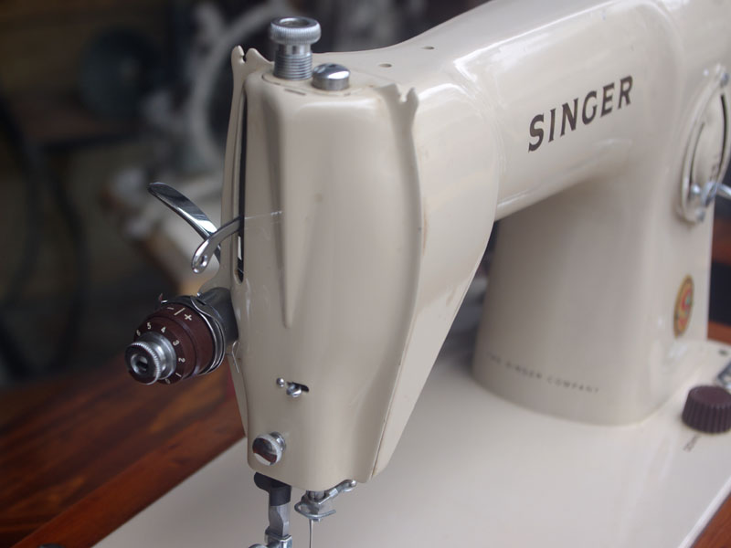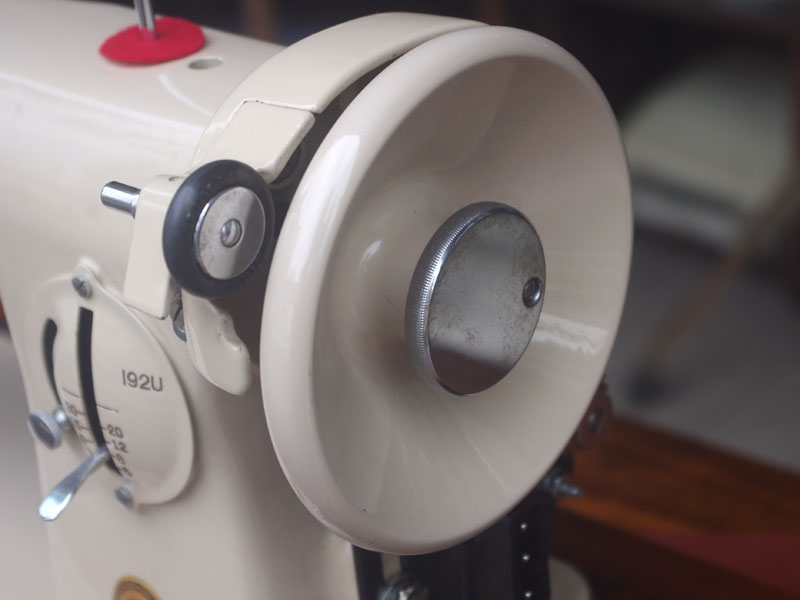 当時、黒が主流だったミシンから新しい流行への移り変わりで本機のようなベージュ色やクリーム色と呼べる新しい色のミシンが登場しました。こちらのシンガー192Uもそんなミシンの一つです。それ以前の堅牢さは残しつつ、柔らかい雰囲気が受け入れられたのでしょう。現代のお宅にもなじんでくれそうな感じがしますね。