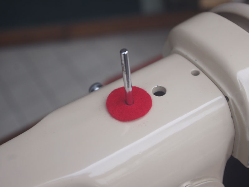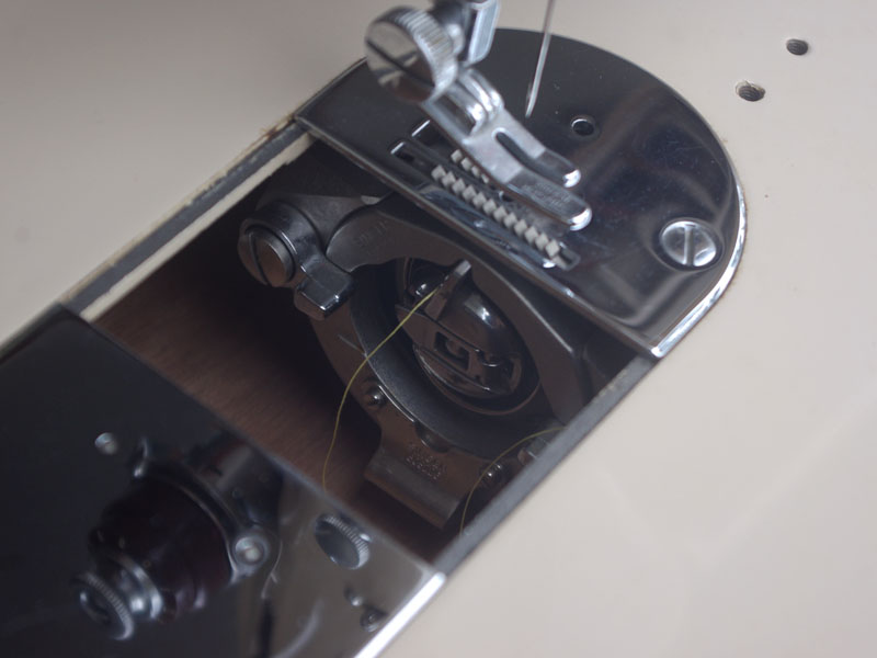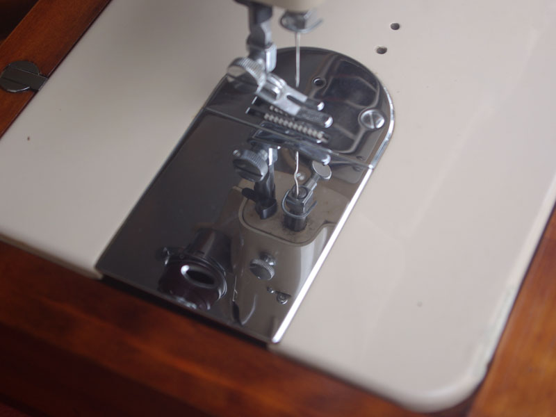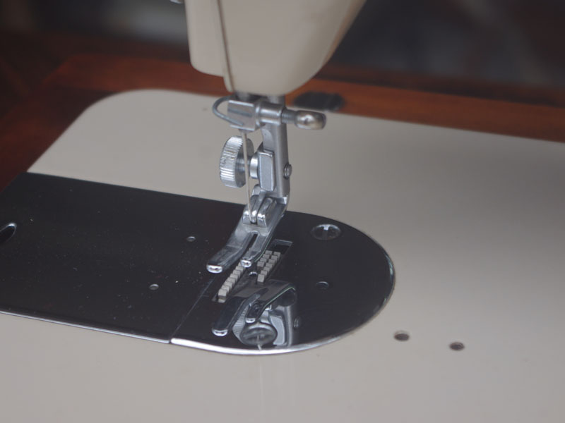 機械内部は汚れておりましたので分解してクリーニングしております。同時に細かな傷を見つけて整備し、消耗品は交換、組み立てて縫えるように調整をしております。こちらには返し縫い機能があります。また送り歯の上下機能もありますので、別途刺繍枠やダーニング押えを入手すればフリーキルトや刺繍も可能です。