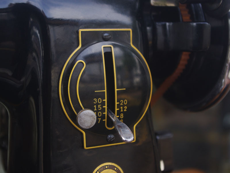 機械内部は汚れておりましたので分解してクリーニングしております。同時に細かな傷を見つけて整備し、消耗品は交換、組み立てて縫えるように調整をしております。こちらには返し縫い機能があります。また送り歯の上下機能もありますので、別途刺繍枠やダーニング押えを入手すればフリーキルトや刺繍も可能です。