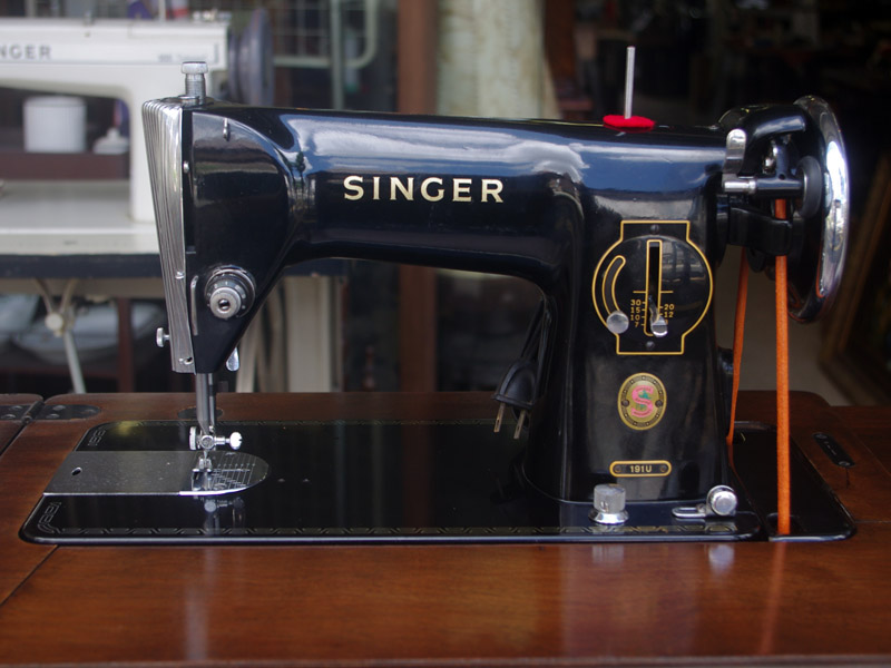 国産のシンガー(SINGER)モデル191Uの足踏みミシンです。この時代より前の機種よりフォルムが角ばってきた最初の機種ですね。現代の呼応業用ミシンを思わせるようなデザインですね。とは言え使い方は従来の家庭用ミシンとほぼ同様で、軽く動作するように整備してございますので、使用に困ることはないかと思われます!こちらのミシンには専用ライトが付いているのも手元を照らして作業が出来るので嬉しいポイントです!