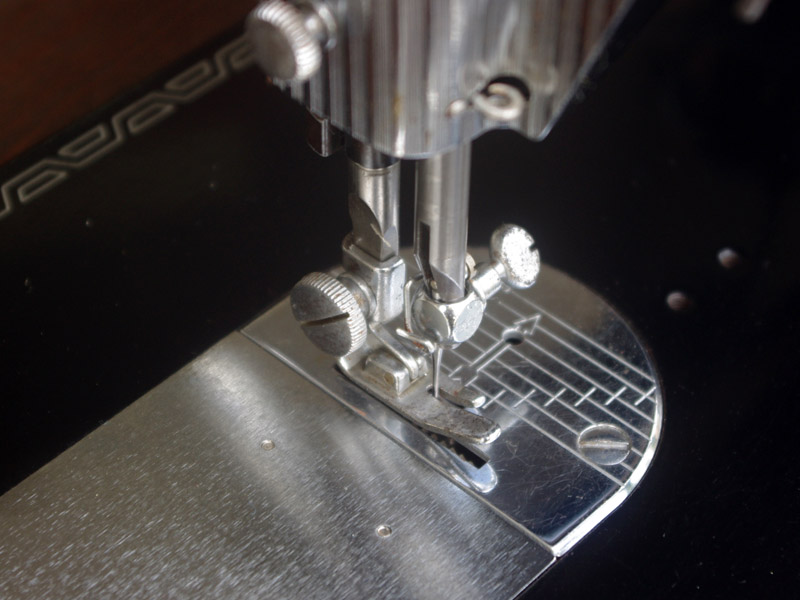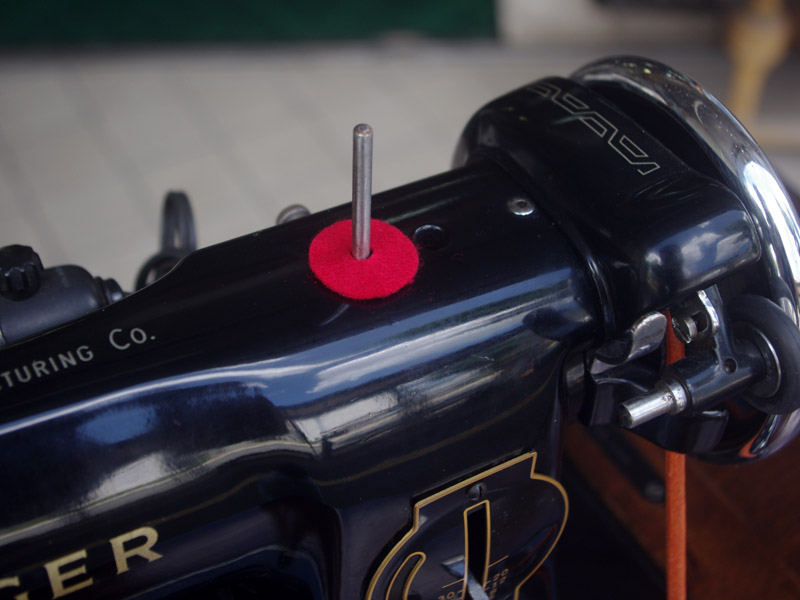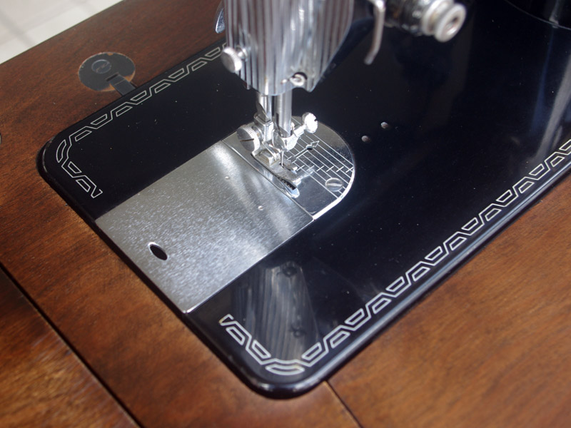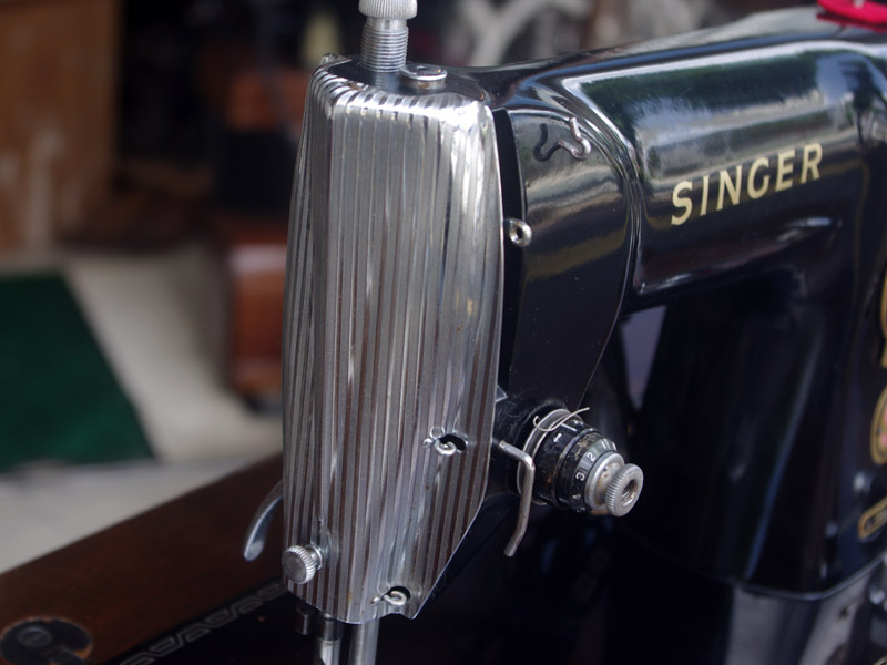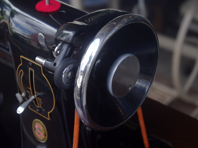 機械内部は汚れておりましたので分解してクリーニングしております。同時に細かな傷を見つけて整備し、消耗品は交換、組み立てて縫えるように調整をしております。こちらには返し縫い機能があります。また送り歯の上下機能もありますので、別途刺繍枠やダーニング押えを入手すればフリーキルトや刺繍も可能です。ライトがミシン後方に取り付けられており現状で白熱電球ですがLEDに交換して使うことも出来ます。