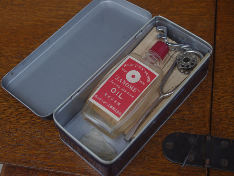 足踏みミシンにはスタートキットとして予備のボビン・ボビンケース・針・ミシン油をおまけでお付けいたします!