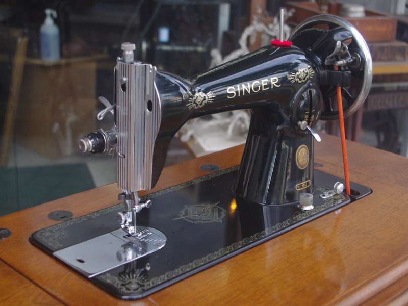 国産のシンガー(SINGER)モデル15Uの足踏みミシンです。本機は昭和30年頃のシンガーミシンで、日本の宇都宮にあったシンガーの工場で製造されました。モデル15“U”のUは宇都宮の頭文字です。この頃のシンガーは海外・日本問わず機械の精度が高いとてもいいミシンを製造していました。まったく現在の技術に引けを取ないように感じるほど完成度が高いミシンです。。