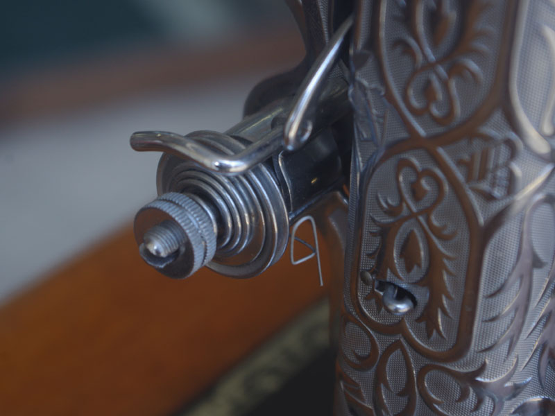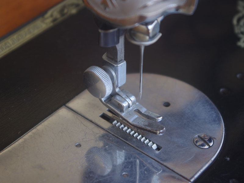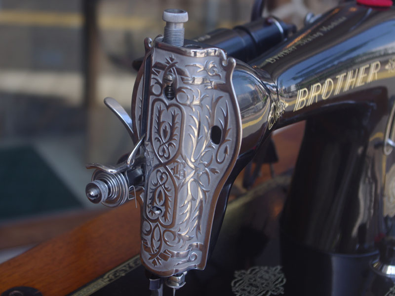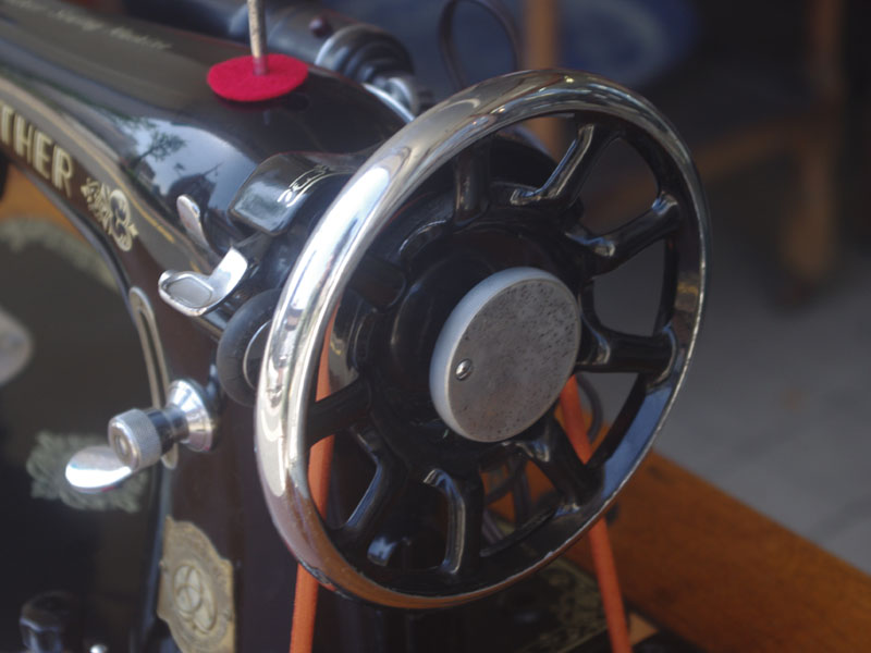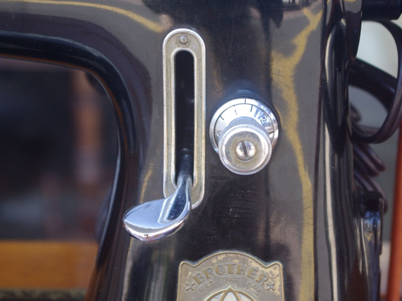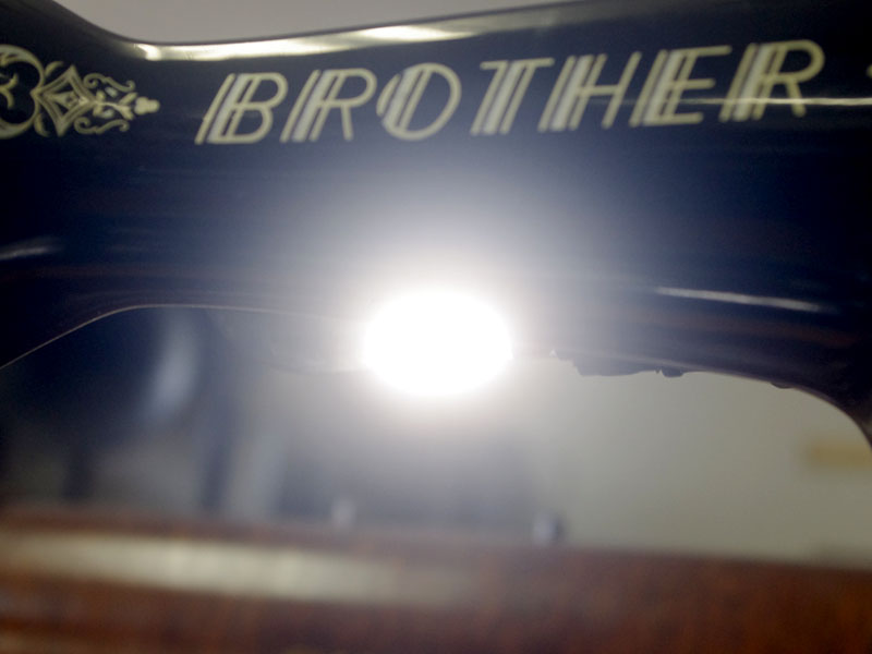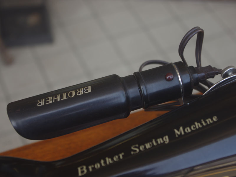 国産のブラザーの家庭用足踏みミシンです。こちらには手元を照らすライトが付いています!ブラザーといえばミシンのメーカーとしては老舗ですので洋裁をする方なら過去に電動・コンピューターでもブラザーのミシンをお持ちだった方も多いでしょう。本機も古くとも老舗らしい機械で、当店で分解整備・調整を行い、音も静かで軽やかに縫えるミシンとなりました。外観でも分かるかと思いますが模様や塗装の擦れが少なく状態は時代を経ていてもとても良いです。実用面に関しましても、ゴム輪やベルトなどの消耗品は交換済みで、ミシンとしての働きも十分に発揮してくれると思います(^_^*)その他の部品に付きましても、家庭用ミシン針・ボビンケース・ボビンなど市販されているものが使用できますので、その点も安心です。直線ミシンですが、ファスナー押えや三巻押え(いずれも別売)などアタッチメントをかえることで様々な縫物が出来ます。また別売りの穴かがり器を使えば、ボタンホールも縫うことが出来ます。