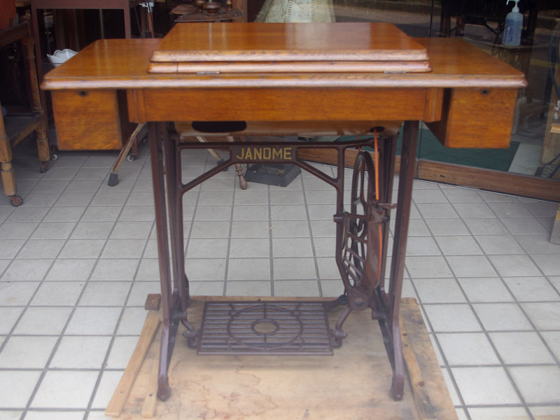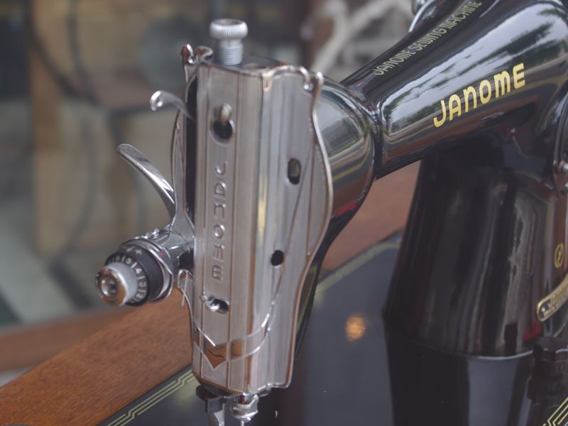 ジャノメ製足踏みミシンです。こちらのミシン、動作音が本当に静かで驚きました!ジャノメの足踏みミシンは静かなものが多いのですが特にこちらは縫う時のカタカタ音すらもあまり感じさせません。ベッドの中央にジャノメのマークがある前の機種も工作精度が高いミシンでしたが、その後継機種になる本機はさらにレベルが上がっています。見た目もきれいですので、これほどのコンディションのミシンに出会うこと自体がまれです。機械内部は分解をしてクリーニングと整備をおこなっております。ボビン・ボビンケース・ミシン針・ゴム輪・ベルトなど消耗品は交換済みで、縫える状態で納品いたします。これらの消耗品は市販もされてますので安心です。こちらのミシンには、レバー操作による縫い目長さの調整、また返し縫い機能があります。送り歯の高さを調整するダイヤルも付いています。別途穴かがり器をご用意いただければ、ボタンホールも縫えます!