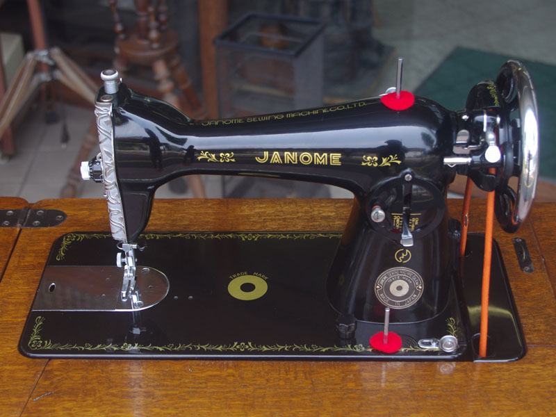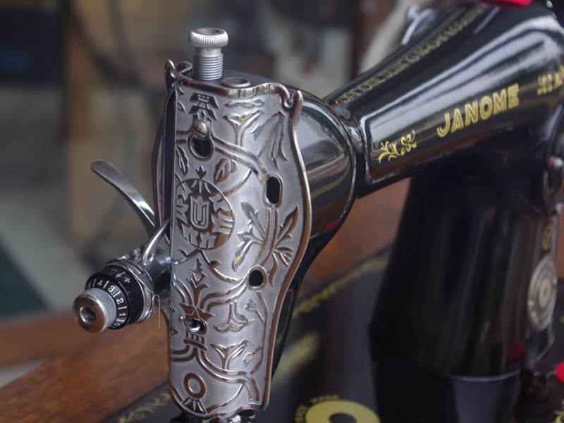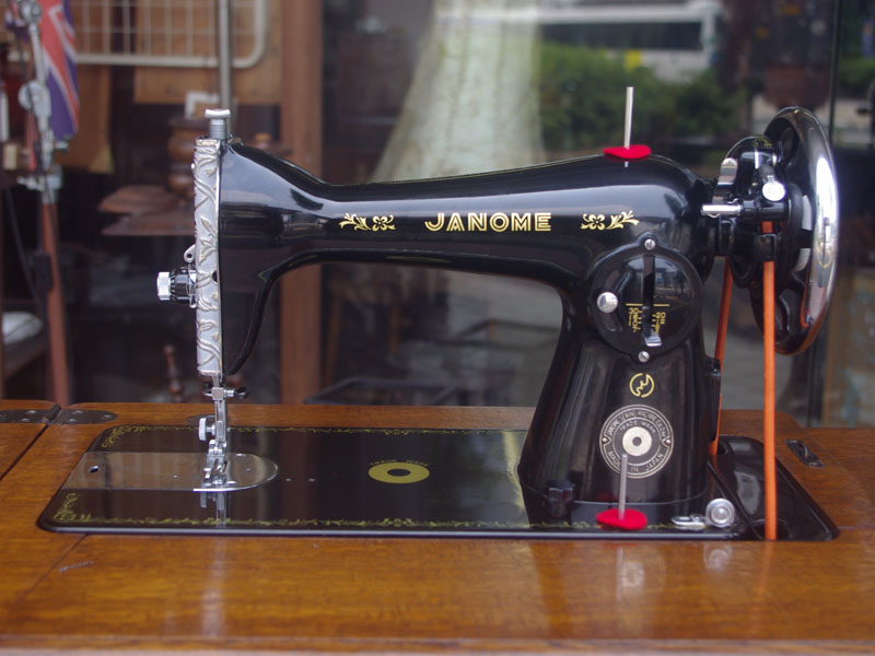 国産のジャノメ製足踏みミシンです。こちらも非常にコンディションの良い足踏みミシンです!絵柄や黒い塗装の状態は見てのとおりですが、機械内部もコンディションの良いミシンです。メーカーは現在もミシンを製造し続けている老舗メーカー・ジャノメ。当時から非常に技術力が高くこちらのミシンもパーツ一つ一つが精巧に製造されています。製造から50年以上経っていてもこの状態ですから、もともとが何十年も使い続けることを想定しているとしか思えません。動作の音も静かで、直線ミシンらしいきれいな縫い目をしています。