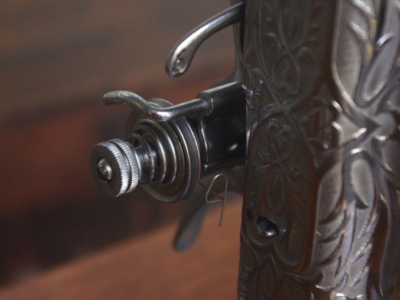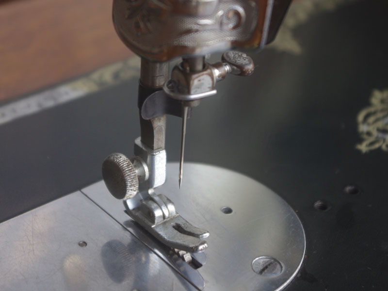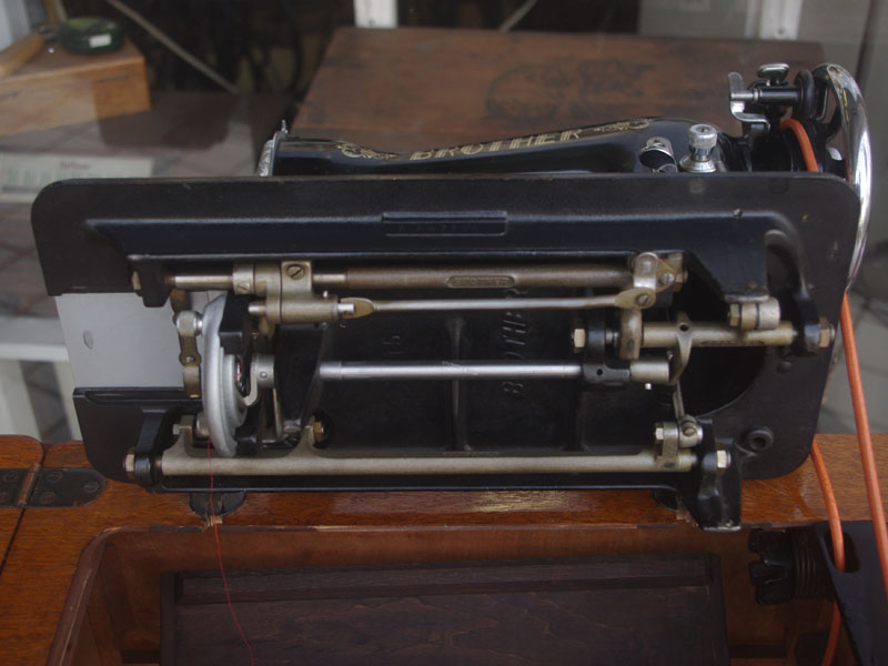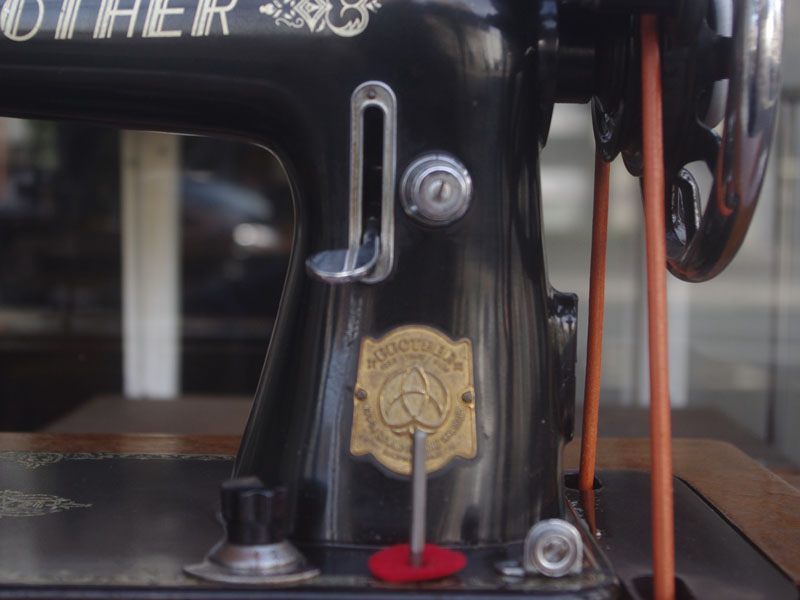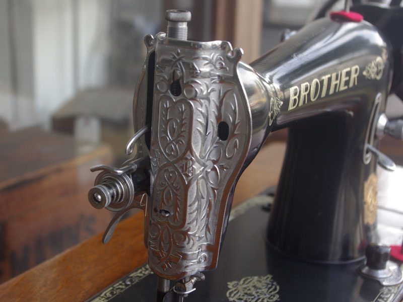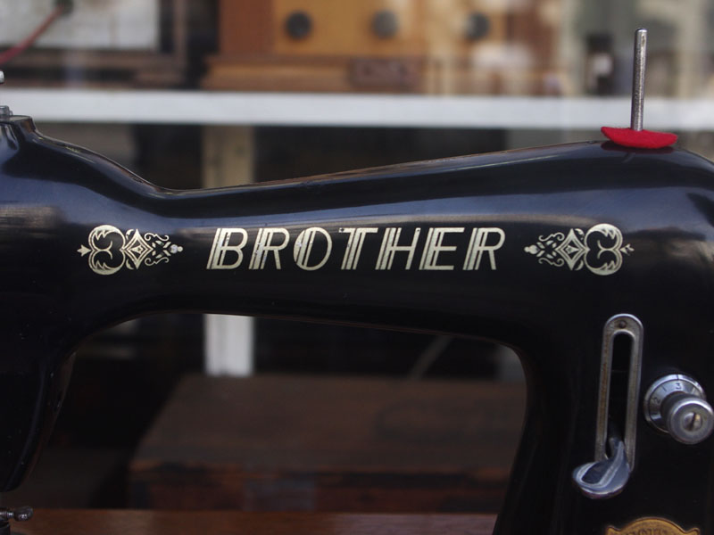 国産のブラザーの家庭用足踏みミシンです。ブラザーはBORTHER、現代のコンピューターミシンや刺繍ミシンでも知らない人はいない大きなミシンメーカーですね。日本で戦前からミシン製造を始めたメーカーで当時から特に戦後は技術力を非常に伸ばしたメーカーだと思います。こちらのミシンも昭和30年代のものでブラザーとしても非常に脂ののった時代のものだと言えます。本機は多少模様の擦れは見られるものの、機械の状態は良く、縫い目もきれいです。家庭用ミシン針・ボビンケース・ボビンなど市販されているものが使用できますので、その点も安心です。直線ミシンですが、ファスナー押えや三巻押え(いずれも別売)などアタッチメントをかえることで様々な縫物が出来ます。また別売りの穴かがり器を使えば、ボタンホールも縫うことが出来ます。