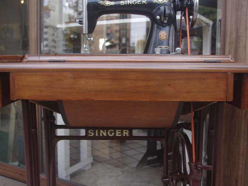 シンガー(SINGER)のモデル15Uです。きっちり整備をして音も静かないい足踏みミシンとなりました!こちらのシンガー15Uは日本製のシンガーミシンになります。15UのUは宇都宮に工場があったことから頭文字が付けられています。海外のモデルも同じく生産地の文字が付いていることがありますね。この頃のシンガーは世界一のシェアがありミシンと言えばシンガーといったような時代でした。人気はさることながら品質もやはり高く、いま私たちが当時の他社の足踏みミシンと比較してもシンガーなら間違いないなと感じます。本機も動作はスムースで縫い目もきれい、縫う時の音もとても静かで、初めての方もベテランの方にもお勧めできる足踏みミシンです。
