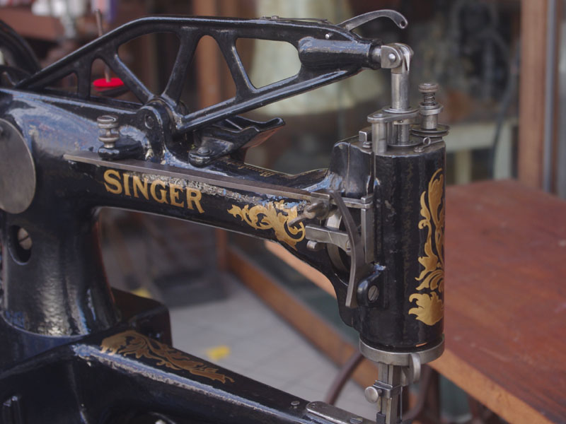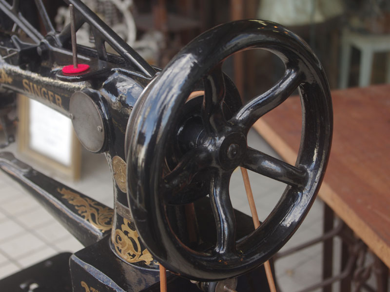調子のよいシンガー製の八方型ミシン、SINGER 29-4が入荷しました。1903年のアメリカ製、120年以上前のミシンが現役という嘘のような話ですが、まだまだ立派に仕事を果たせるミシンに仕上がりました!この同型のミシンでは日本の八方ミシンが有名ですが、その大元となったのがシンガーのモデル29。モデル29は送り歯の向きが360度回転できるミシン、つまり四方八方に縫えるということで、八方ミシンと名付けられたのではないかと想像しています。これだけの機械がいまだにばっちり動くのは、ほんとうにいい素材を使って良い加工をしてミシンを作っていたんだなと感服してしまいます。
