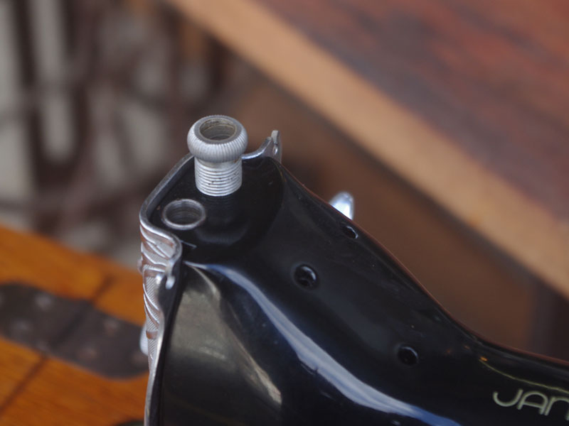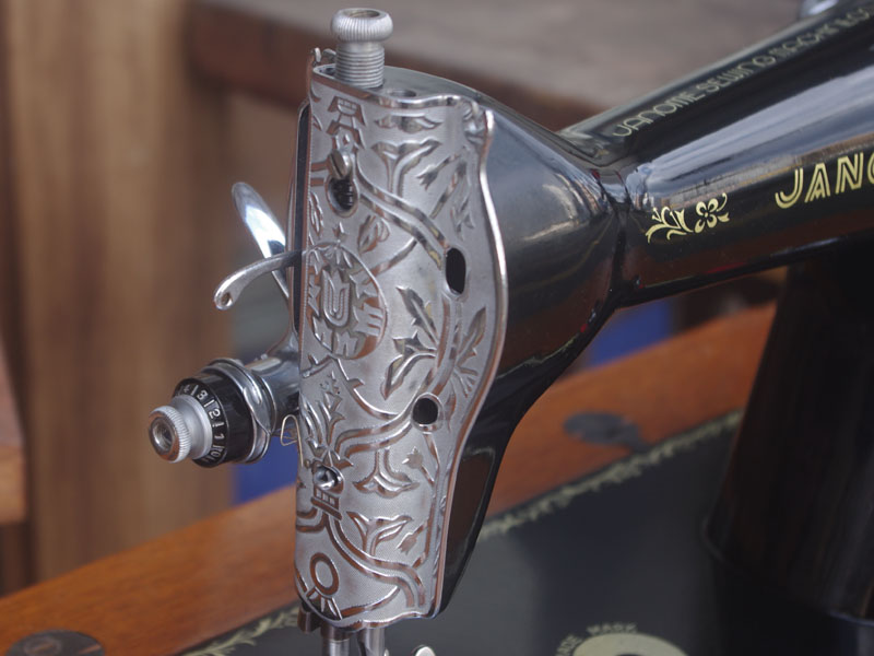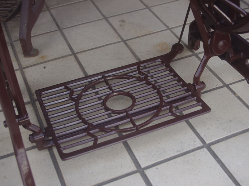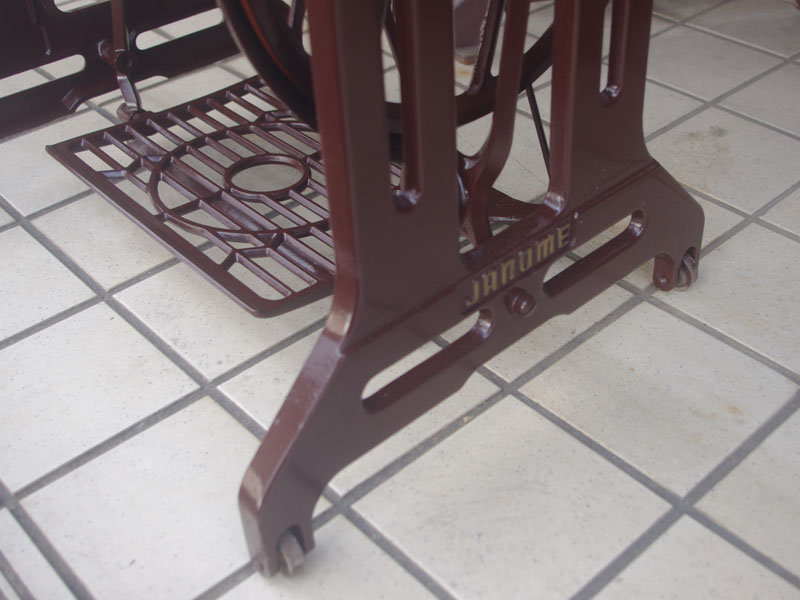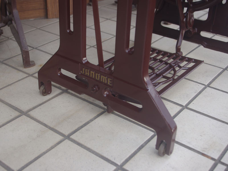 ジャノメの足踏みミシンが仕上がりました!こちらの足踏みミシンはもちろん日本製、ジャノメは今でもミシンを製造する日本を代表するミシンメーカーの一つです。もう数十年も前のものではありますが、とても精巧にできており、とても丁寧に作られていたことが想像できます。それゆえ本機は静かで安定していて、当然縫い目もきれいなミシンです。絵柄や黒い塗装もしっかりと残っていますね。