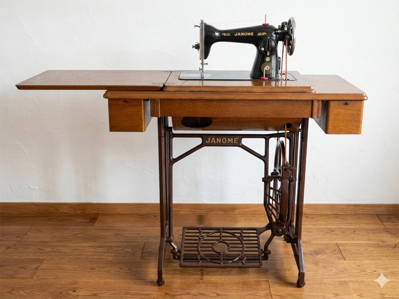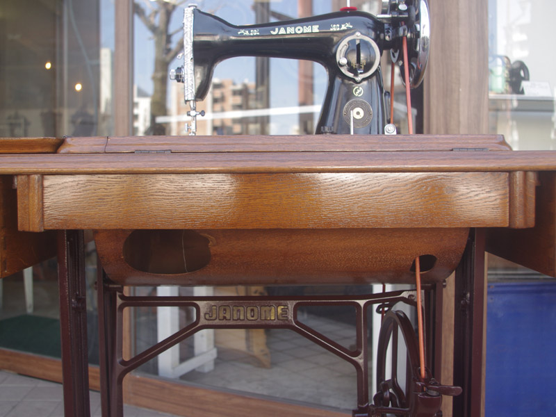 こちらも名器、ジャノメの家庭用の足踏みミシンです!この時代のミシンの中では特に静かで安定していて縫い心地もよく、ほんとうにおすすめできる足踏みミシンです。