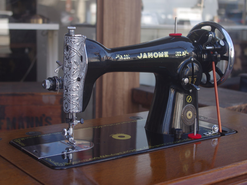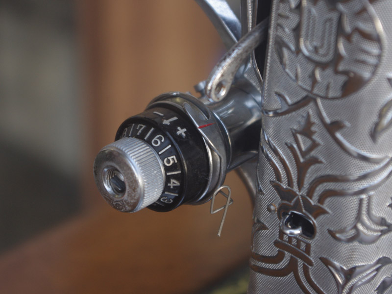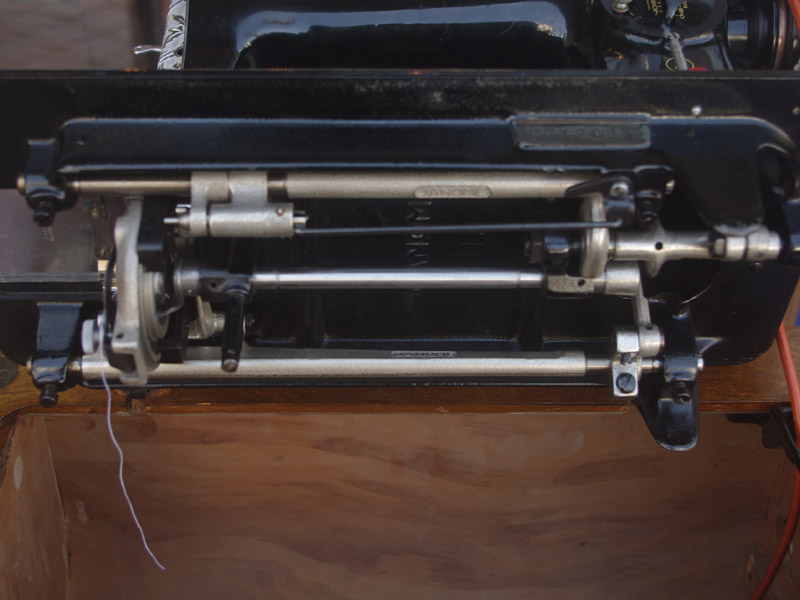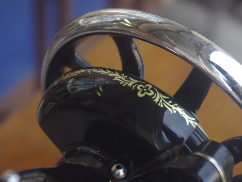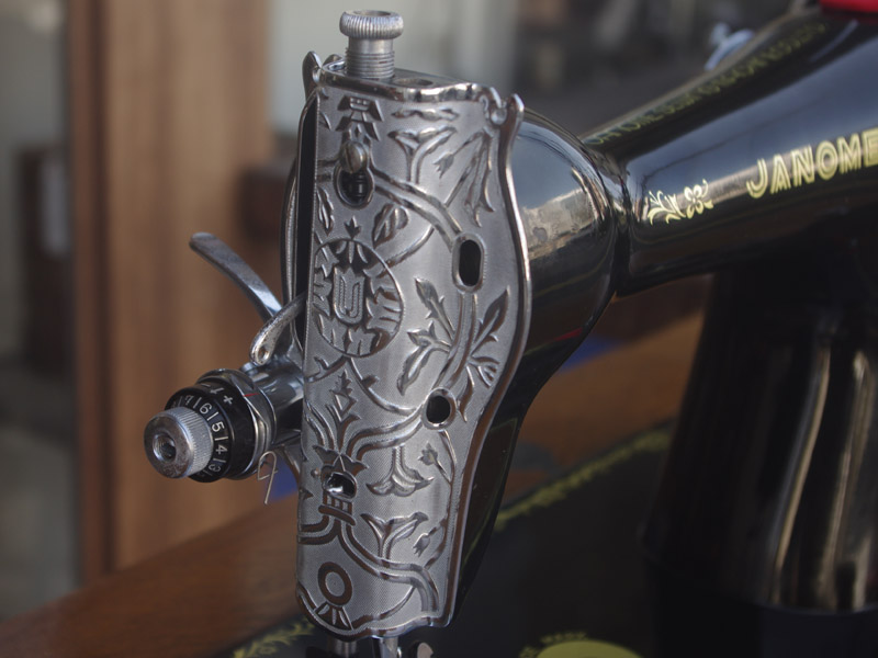 ジャノメは特に模様、コーティングの塗装が良く、ツヤもあり、見た目は他のメーカーと比べても非常にきれいです。機械の工作の精度も高く、例えばネジの締まり具合や軸受けを通る部品の滑らかさなど、分解してみないと分からない点ではありますが、とても良く出来ていると感心します。その精度は、縫製の心地よさにもつながっていて、足踏みで縫い進んでいくときの感触になんとも言えない心地よさを感じます。使っていてミシンから伝わってくる使い心地や手になじむ感じは、足踏みミシンならではです。