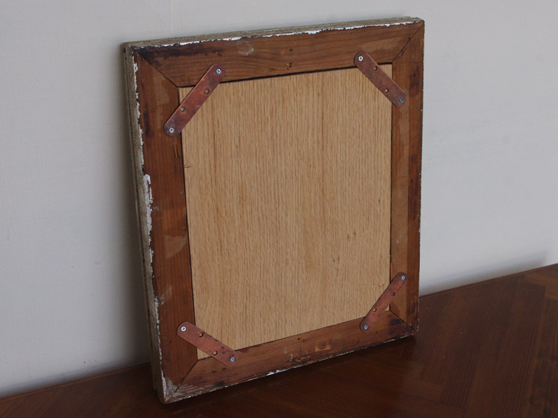 ドイツから届きましたアンティーク額縁を使った鏡です。元々は絵画が入っていたと思われますが、失われたり劣化していたりしたため、当店で鏡を入れてアンティークフレームミラーにいたしました。