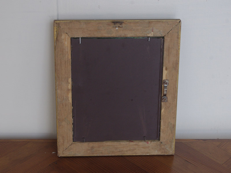 ドイツから届きましたアンティーク額縁を使った鏡です。元々は絵画が入っていたと思われますが、失われたり劣化していたりしたため、当店で鏡を入れてアンティークフレームミラーにいたしました。