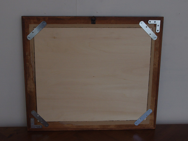 ドイツから届きましたアンティーク額縁を使った鏡です。元々は絵画が入っていたと思われますが、失われたり劣化していたりしたため、当店で鏡を入れてアンティークフレームミラーにいたしました。