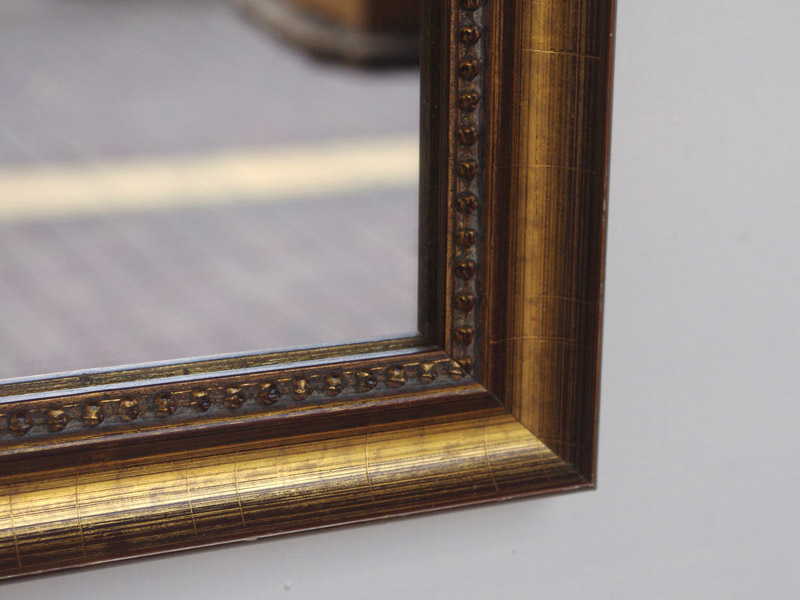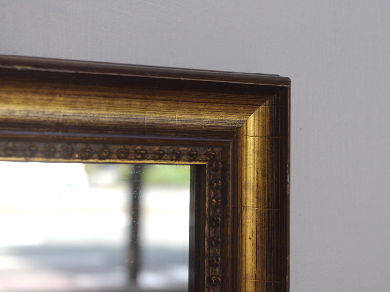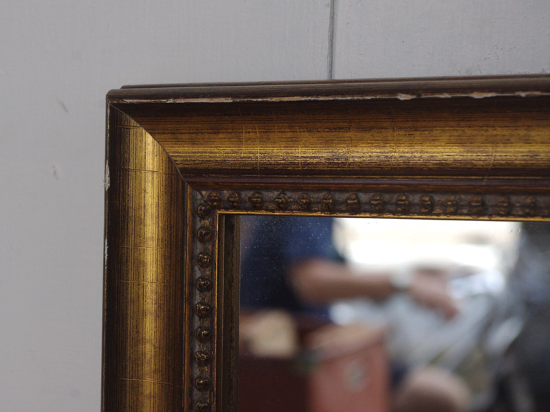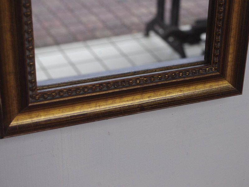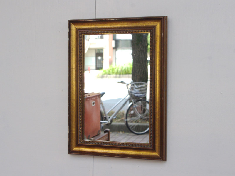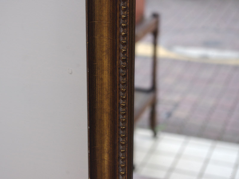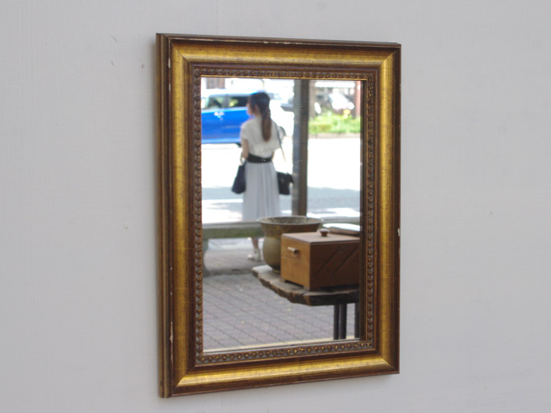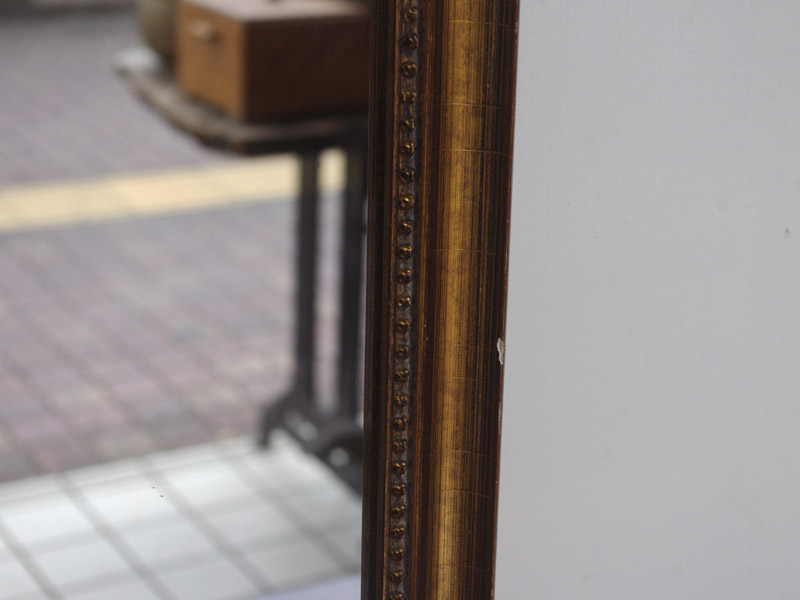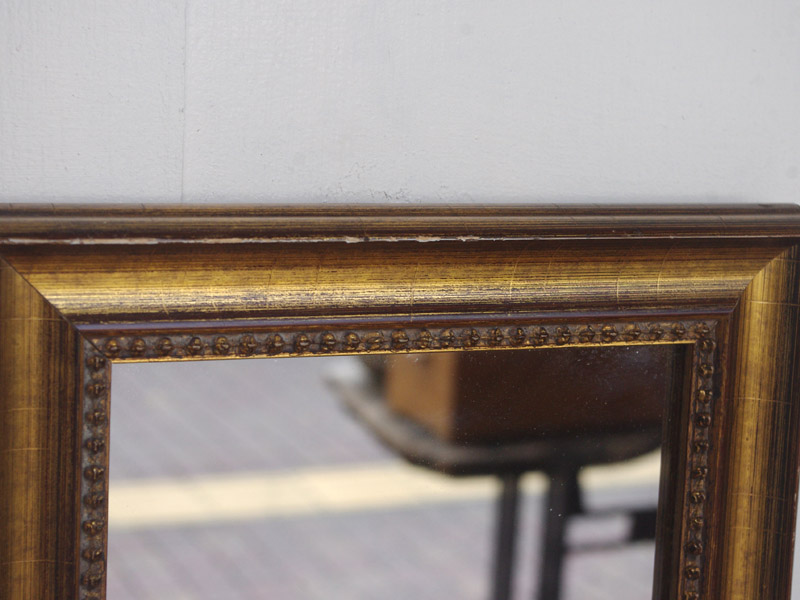 金色の箔が惜しみなく貼られた、いかにもヨーロッパの古い絵画に使われていそうな額縁です。今回入荷した分でも雰囲気のある鏡になりました。