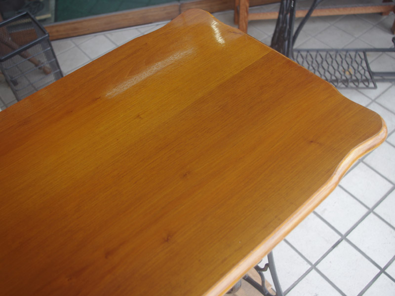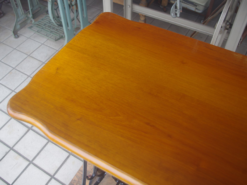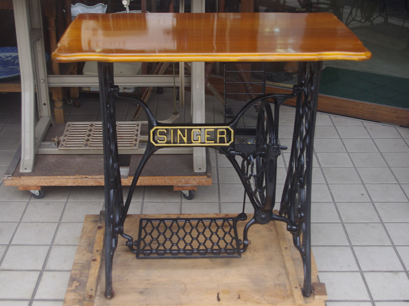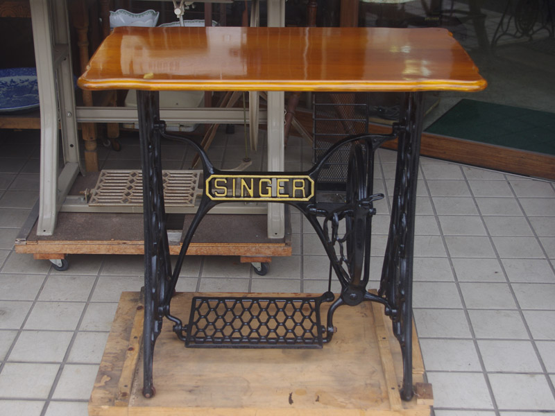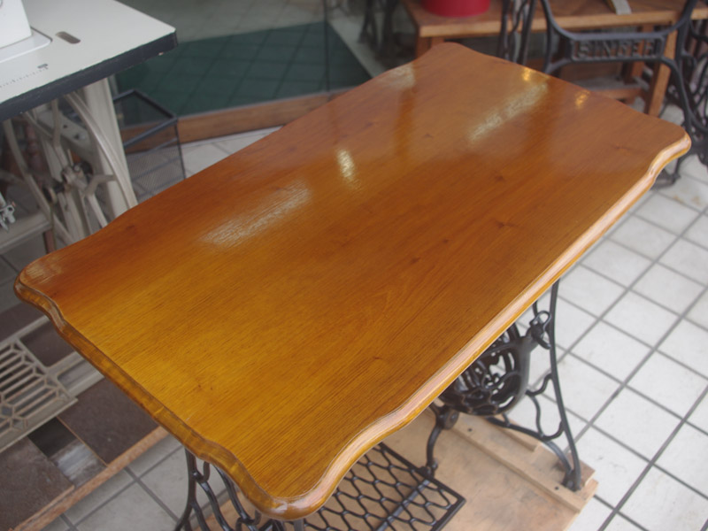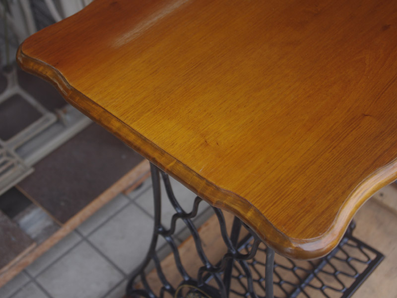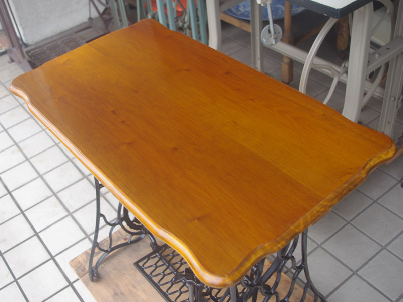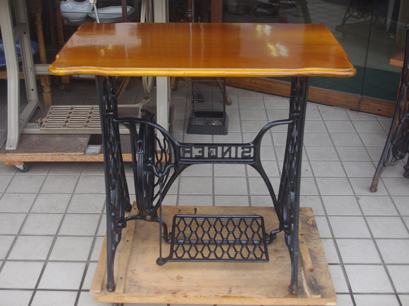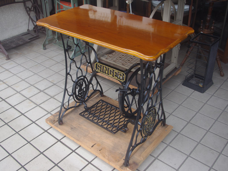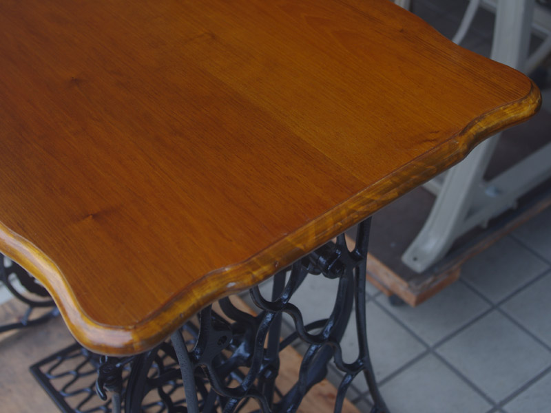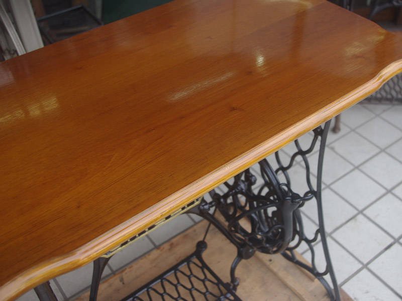古いシンガーの鉄脚を使ったテーブルです。本物のアンティークミシンを元に、当工房にてテーブル台を制作いたしました。