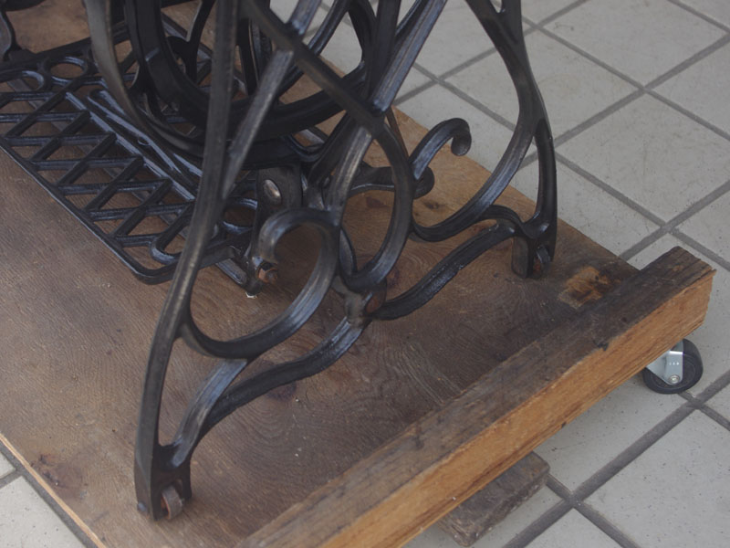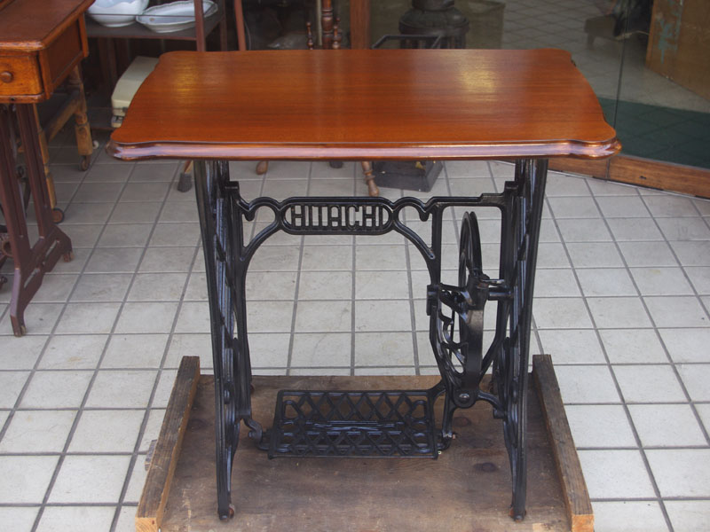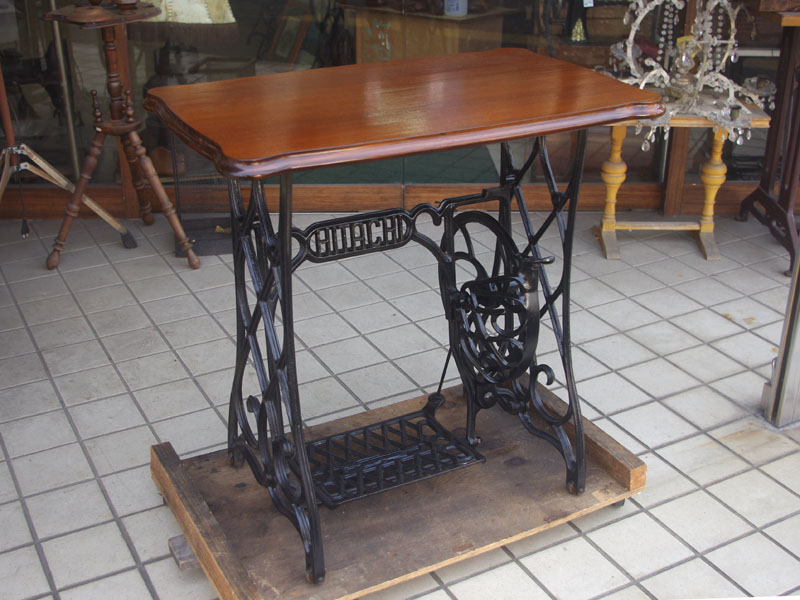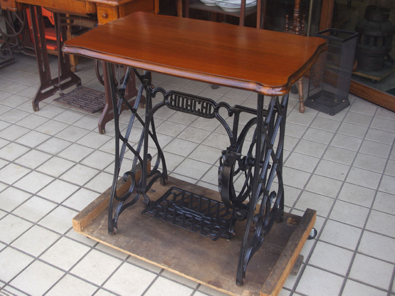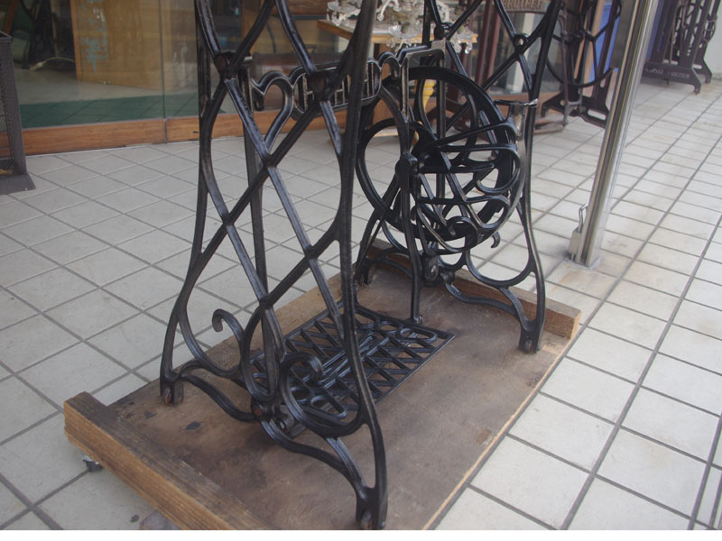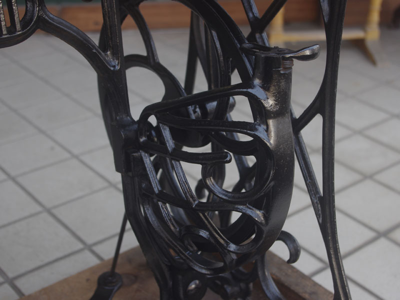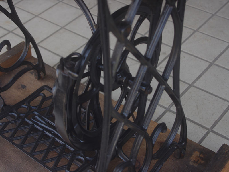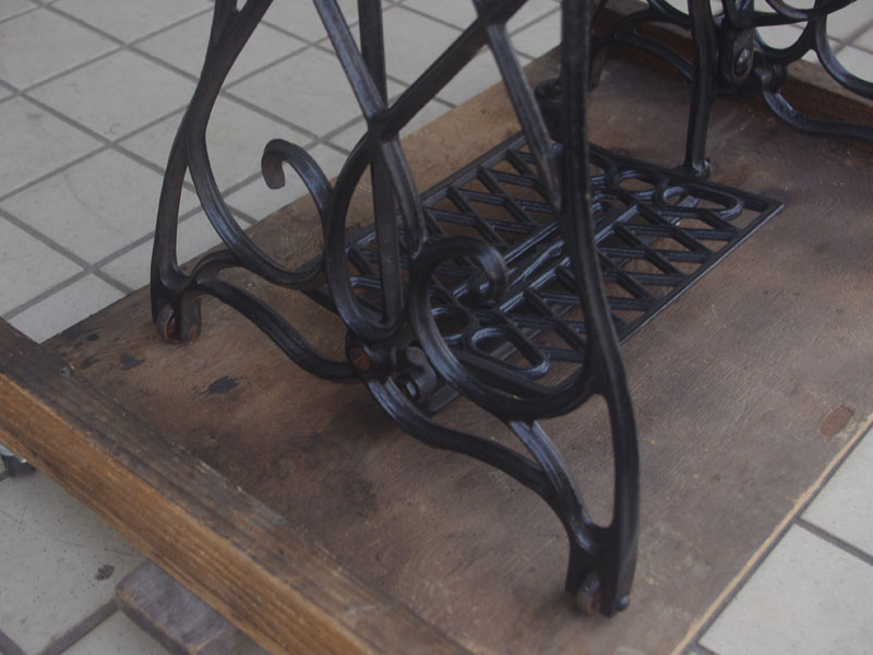 古いアンティークミシンの鉄脚を使ったテーブルです。本物のアンティークミシンを元に、当工房にてテーブル台を制作いたしました。